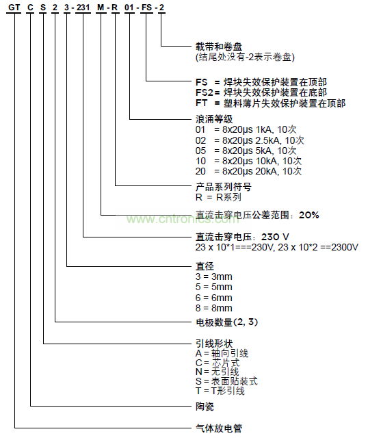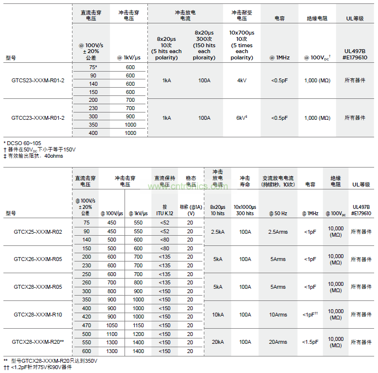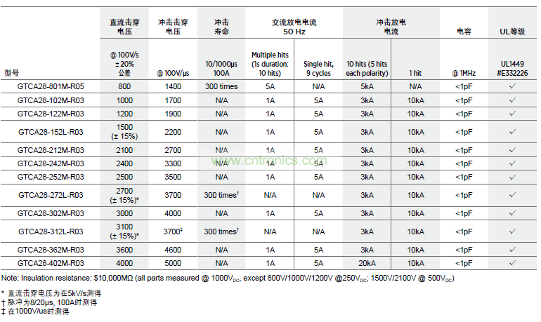 具有低弧光电压的过压?;て骷?br /> 较高精度的放电电压,适用于高精密设计