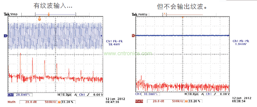 电源过滤通常带有输出端的 LC 滤波器,以降低开关式调节器的’纹波电压。简单的输出滤波器可以降低这种噪声,但这种方案的尺寸在这些空间受限的应用中是个问题。Micrel 创新的 Ripple Blocker™ 技术(专利申请中)能够实现单芯片解决方案,这种解决方案将滤波器和一个开关或一个 LDO 整合为一个部件。这可以将 PCB 的尺寸降低最多 65%,在最小的电路板面积上实现优秀的性能。(5MHz时 >60dB)