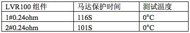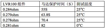 其次选取典型值电阻的 LVR100 和功率电阻集成的组件,来进行 0°C/25°C 温度下榨水果马达堵转?;な奔?,下表 2 为马达的?;な奔洹?br />
