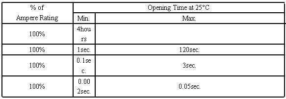 保险丝需要有一定的过载能力:UL规范保险丝的最大不熔断电流是110%In; IEC规范保险丝的最大不熔断电流是150%In或120%In保险丝也要求在超过限量的过载电流时能及时地烧断:UL规范保险丝的最小熔断电流在130%In 左右;  IEC规范保险丝的最小熔断电流在180%In 左右;