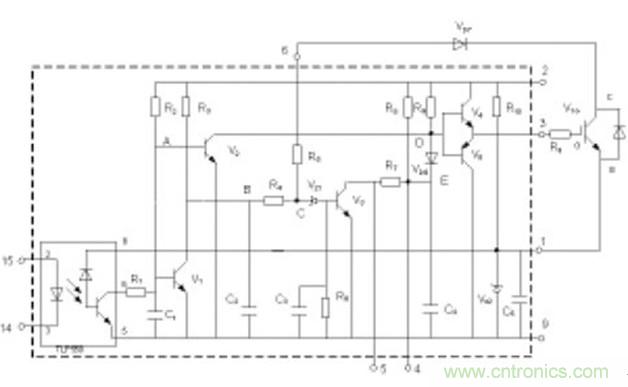 当然驱动电路还要注意像防止门极过压等其他一些问题。日本FUJI公司的EXB841芯片具有单电源、正负偏压、过流检测、保护、软关断等主要特性,是一种比较典型的驱动电路。其功能比较完善,在国内外得到了广泛[2,3,4]。