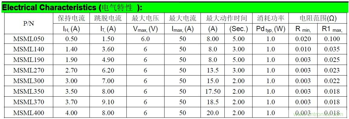 具有广泛应用范围的自恢复保险丝系列产品