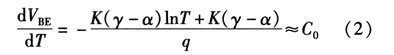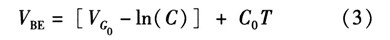 如果忽略由温度变化引起lnT项变化对式(2)的影响,dVBE/dT可近似等于常数C0。常温下C0约为-2 mV/K。为了简化计算,则PN结关于温度的变化方程可近似线性为![]()