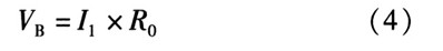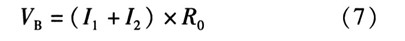 B点的电压为电阻上的电压,可由欧姆定理计算得到。计算温度上升翻转点TH,当温度上升时,由前分析可知,TSD为高电平,M2截止。因此流入R0的电流只有I1一路。此状态下VB电压的表达式为