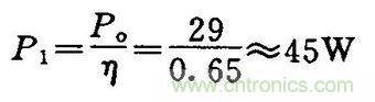 开关电源的效率η一般在60~90%之间,本例取η=0.65,则输入功率为