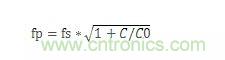 当频率继续提高,高于fs时,LCR支路呈感性,这样和C0产生并联谐振,并联谐振频率fp,其计算公式为: