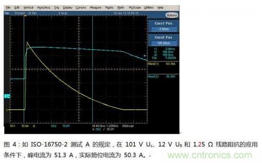 正向浪涌电流规格与两个主要操作有关,ISO-16750-2和JASO D001-94汽车标准包含模拟这两个操作的测试。第一个操作是保护电路不受负载突降条件期间发生的高电流的干扰。模拟第二个操作的测试是ISO-7637-2 Pulse 2a和3b,这两个测试分别由50 ms和100 ms脉冲宽度与2Ω和50Ω线路阻抗组成。与负载突降测试条件下的正向浪涌电流相比,这是一个相对较小的能量值。