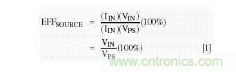 计算和测量电源效率非常简单。EFFSOURCE = (送入调节器的功率)/(VPS输出功率) x 100%: