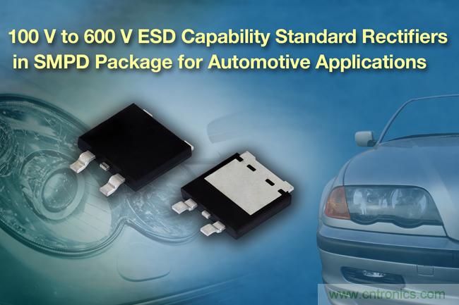 【导读】近日,Vishay Intertechnology, Inc.宣布,推出三款通过AEC-Q101认证,电压100V至600V的新款标准整流器。这三款整流器采用薄型SMPD封装,具有ESD功能,电流等级从10A到20A。为了满足空间受限应用的需求,它们采用了SMPD(TO-263AC)封装,这种封装具有1.7mm的极低高度,占位兼容D2PAK。