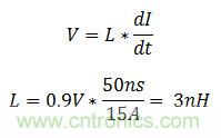 用电子负载测试电源的瞬态响应很常见。对许多系统轨(如服务器的3.3V或5V总线)而言,电子负载很容易配置为在2-10A/us的范围内汲入电流的模式。但是,内核电压可能需要转换速率比这些水平高两个数量级。高转换速率测试中的一个主要限制因素是负载路径中的寄生电感。要以300A/us的速率为0.9V输出转换15A的电流,公式1计算出的最高电感是3nH。作为参考,成圈状通过电流探头的16级导线的1英寸片可将20nH的电感添加到负载路径中。很明显,需要另一种电流汲入方法。