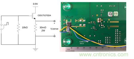大多数电源评估??榭梢院苋菀椎乇慌渲梦焖偌橙氲缌鞯哪J健M?举例说明了分立金属氧化物半导体场效应晶体管(MOSFET)加可直接从输出平面焊接到接地装置的检测电阻器电路。选择快速切换的低栅极电荷MOSFET以及能处理负载功率的低电感检测电阻器至关重要。