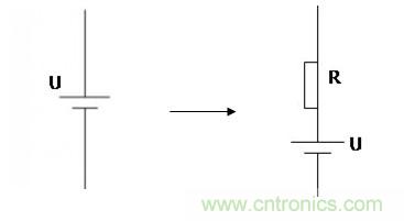 实际电路中,电源存在内阻,相当于串联一个电阻,此时输出电压就会有所下降,对电路中的干扰不可忽略。