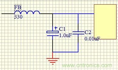 在输入电源上,数字电路干扰是一个一个小尖峰,不能用大电容滤波,只能用小电容;滤波电容一大一小(小电容滤除高频干扰,大电容滤除低频干扰)一定要放在根部,不要放太远,也不要放在电路板背面。