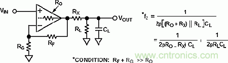 在运放的输出端和负载电容之间串入一个电阻RX,一般而言它的阻值为10-100欧姆。