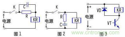 KR在VT导通时,上面电压为上正下负,电流方向由上向下。在VT关断时会,KR中电流突然中断,会产生感应电势,其方向是力图保持电流不变,即总想保持KR电流方向为由下至下。这个感应电势与电源电压迭加后加在VT两端,容易使VT出穿。为此加上VD,将KR产生的感应电势短路掉,电注是你所说的“顺时针方向在二极管和继电器所的小回路里面流动”,从而保护VT。图2中的R、C也是利用C上电压不能突变的原理,来吸收感应电势。(VT三级管,KR继电器,VD续流二极管)