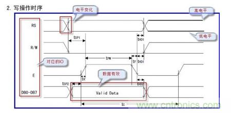 发现了么,写指令和写数据,差别仅仅在于RS的电平不一样而已。以下是LCD1602的时序图: