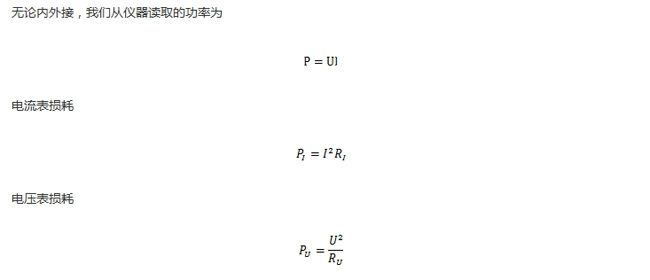 对于功率测量仪器,我们希望电压通道输入阻抗无穷大,电流通道输入阻抗无穷小。然而现实跟理想总有那么一点差距,电压表和电流表的输入阻抗消耗了测量回路中电能,产生了系统误差,对测量精度的影响跟测量方法有关。