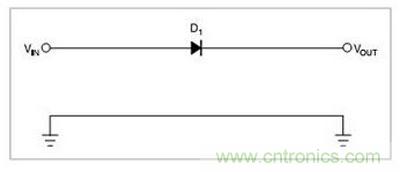 图1一只串联二极管保护系统不受反向极性影响,二极管有0.7V的压降。