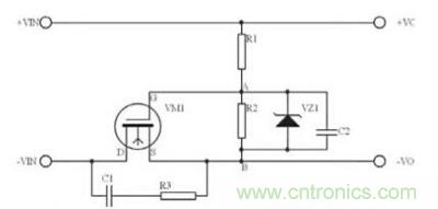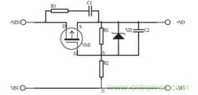 VZ1为稳压管防止栅源电压过高击穿mos管。NMOS管的导通电阻比PMOS的小,最好选NMOS。