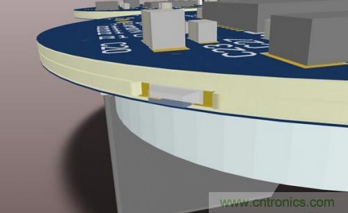 图2:在圆形PCB板上为SMT LED而设计的凹槽。