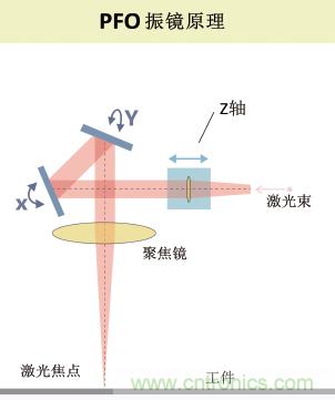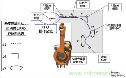 除了激光拼焊,激光飞行焊也已经被广泛应用于汽车车身及其他零部件的焊接。激光飞行焊是将振镜焊接头与机器人的运动结合起来,实现高效灵活的激光焊接。振镜(PFO)及飞行焊的原理见图4、5、6。其中PFO可以通过两片镜片的旋转,实现激光焦点在工件上的快速灵活移动和定位,可以大大提供激光焊接时的动态性能,更加高效。而机器人则可以扩展焊接范围,以实现更大零件的焊接。两者的结合,则可以实现优势互补,达到高效、灵活、低成本的激光焊接。
