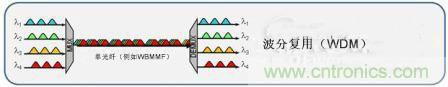 波分复用是通过由不同光的波长(颜色)隔离而成的多个通道上,经复用器汇合和分离而同时发送信号的技术。顾名思义,用于传输的波长频带被分为多段,每段都能用作通信的信道。将多个信道挤出来作为一个小频谱是可能的。用于长途、单模系统的常见版本叫做密集波分复用或粗波分复用。在多模系统中,短波分复用技术正在出现。