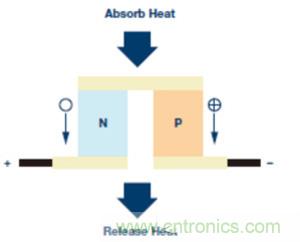 图3.珀尔帖效应:P-N半导体对的热流