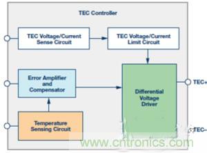 设计电信系统中激光二极管的TEC控制器系统是一项很复杂的工作。除了热精度方面的挑战之外,封装尺寸通常非常小,功耗容差也很低。一般而言,设计精良的TEC控制器应具备如下优点:精准温度调节、高效率、板尺寸很小、低噪声、电流和电压监控与保护。