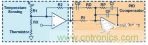 图8.使用ADN8834内部两个斩波放大器的热反馈环路图