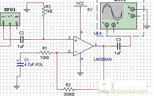 我们先用LM324电压跟随器做一个简略的草图,图片如下所示: