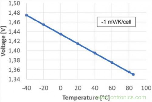 这两个效应导致每个电芯具有-1 mV / 1 °C的线性电压相依性。