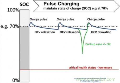 4. 施加充电脉冲,以补偿自放电和后备荷载