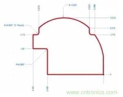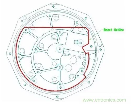 DXF 是一种沿用时间最久、使用最为广泛的格式,主要通过电子方式在机械和 PCB 设计域之间交换数据。AutoCAD 在 20 世纪 80 年代初将其开发出来。这种格式主要用于二维数据交换。大多数 PCB 工具供应商都支持此格式,而它确实也简化了数据交换。DXF 导入/导出需要额外的功能来控制将在交换过程中使用的层、不同实体和单元。图 5 就是使用 Mentor Graphics 的 PADS 工具以 DXF 格式导入非常复杂的电路板外形的一个示例: