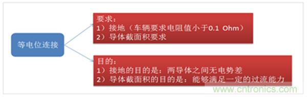 在电动汽车产品中,如果整个电池组的最大电压超过60V(DC),就已经超过了人体安全电压的范围,必须进行等电位连接,以确保使用安全。
