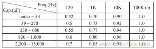 图2.电容纹波电流频率因子