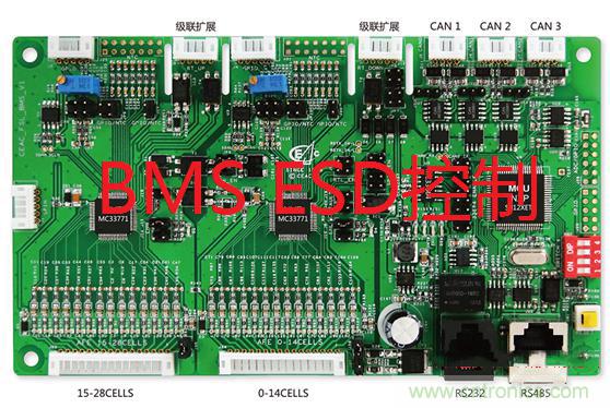 【导读】典型的BMS控制板,基于NXP核心汽车级器件。作为板级ESD控制的主要部位为3路的CAN通信和对外通信接口,此方案内置了高可靠性的ESD防护,支持热插拔和随机的电池连接防护。