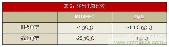 • 较低的栅极和输出电荷:GaN提供较低的栅极电荷。与MOSFET的4nC相比,典型的中压器件具有大约1nC的栅极电荷(表2)。较低的栅极电荷使设计具有更快的导通时间和转换速率,同时减少损耗。