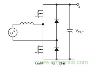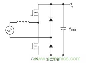 一种替代方案是连续导通模式图腾柱拓扑。这种拓扑结构充分利用了GaN的所有关键特性,最终导致尺寸更小、工作频率更高的设计(图4)。GaN的零反向恢复对于实现该拓扑特别重要。