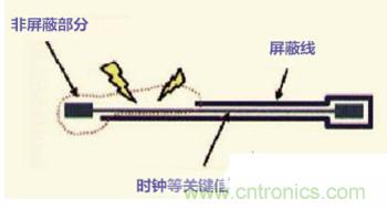 在高速的PCB设计中,时钟等关键的高速信号线,走线需要进行屏蔽处理,如果没有屏蔽或只屏蔽了部分,都会造成EMI的泄漏。建议屏蔽线,每1000mil,打孔接地。