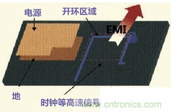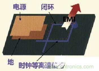 时钟信号等高速信号网络,在多层的PCB走线的时候一旦产生了开环的结果,将产生线形天线,增加EMI的辐射强度。