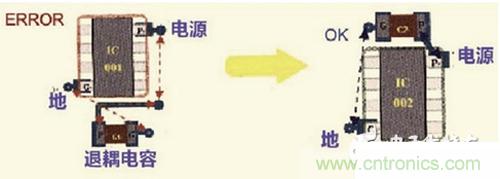 退耦电容的摆放的位置非常的重要。摆放不合理根本起不到退耦的效果。其原则是:靠近电源的管脚,并且电容的电源走线和地线所包围的面积最小。