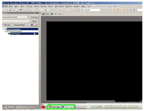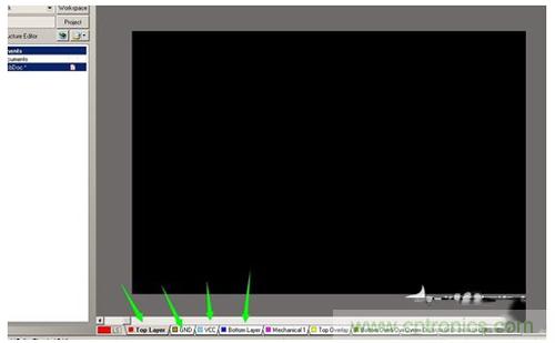 可以看到建好的PCB只有两个层,Top Layer 和 Bottom Layer。如下图所示。