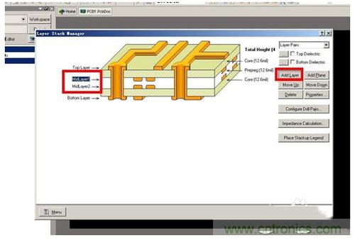 可以看到目前只有两个层Top Layer 和 Bottom Layer??梢钥醇也嘤蠥dd Layer选项。
