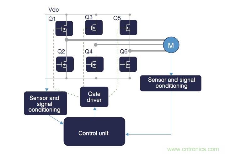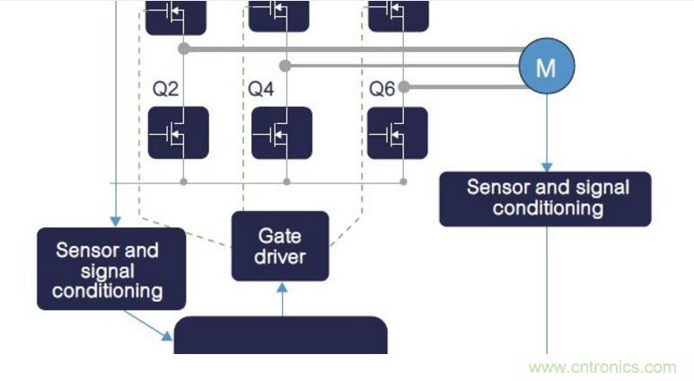在电桥拓扑内,反向恢复过程从下桥臂开关(图7中的Q2)续流结束时开始,到上桥臂开关(图7中的Q1)开始导通时终止,且最终的恢复电流加到上桥臂电流内。连同上桥臂开关上的额外电流,下桥臂反向恢复过程与Vds≈0V到Vdc换向操作,可能会在下桥臂开关闸源电压上产生杂散跳变电压,因为下桥臂Ciss(输入电容)是透过Crss(Miller电容)完成充电过程。