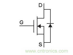 1所示是一个N沟道功率MOSFET的典型符号。本征体漏二极管由p-body和n-drift两个区组成,如图1所示,体漏二极管与MOSFET的导电沟道并联。