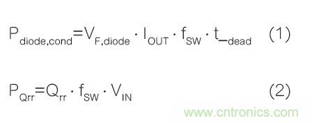 事实上,下桥臂体二极管导通损耗(Pdiode,cond)和反向恢复损耗(PQrr)与二极管正向压降(VF,diode)及其反向恢复电荷(Qrr)密切相关: