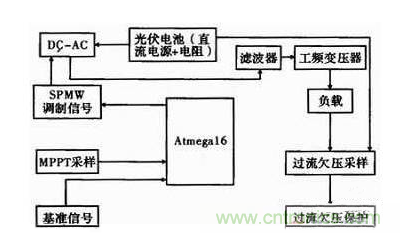 【导读】文中研制了一套模拟并网发电系统,实现了频率跟踪、最大功率跟踪、相位跟踪、输入欠压?;ぁ⑹涑龉鞅;?、反孤岛效应等功能;采用Atmega16高速单片机,实现了内部集成定时、计数器功能;利用定时器T/C2的快速PWM功能,实现SPWM信号的产生;采用T/C1的输入捕获功能,实现了频率相位监测和跟踪以及对失真度、输入电压、输出电流等物理量的检测与控制。