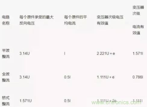 注:U为负载两端电压值;I为负载上电流值;e为整流二极管压降,一般取0.7V。