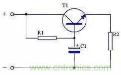 图22中,C1可选择几十微法到几百微法;R1可选择几百欧到几千欧,具体取值可根据T1的β值确定,β值高,R可取值稍大,只要保证T1的集电极-发射极电压(UCE)大于1.5V即可。T1选择时要注意耗散功率PCM必须大于UCEI,如果工作时发热较大则需要增加散热片。