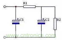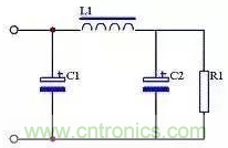 使用两个电容和一个电阻组成RC滤波电路,又称π型RC滤波电路。见图20所示。这种滤波电路由于增加了一个电阻R1,使交流纹波都分担在R1上。R1和C2越大滤波效果越好,但R1过大又会造成压降过大,减小了输出电压。一般R1应远小于R2。